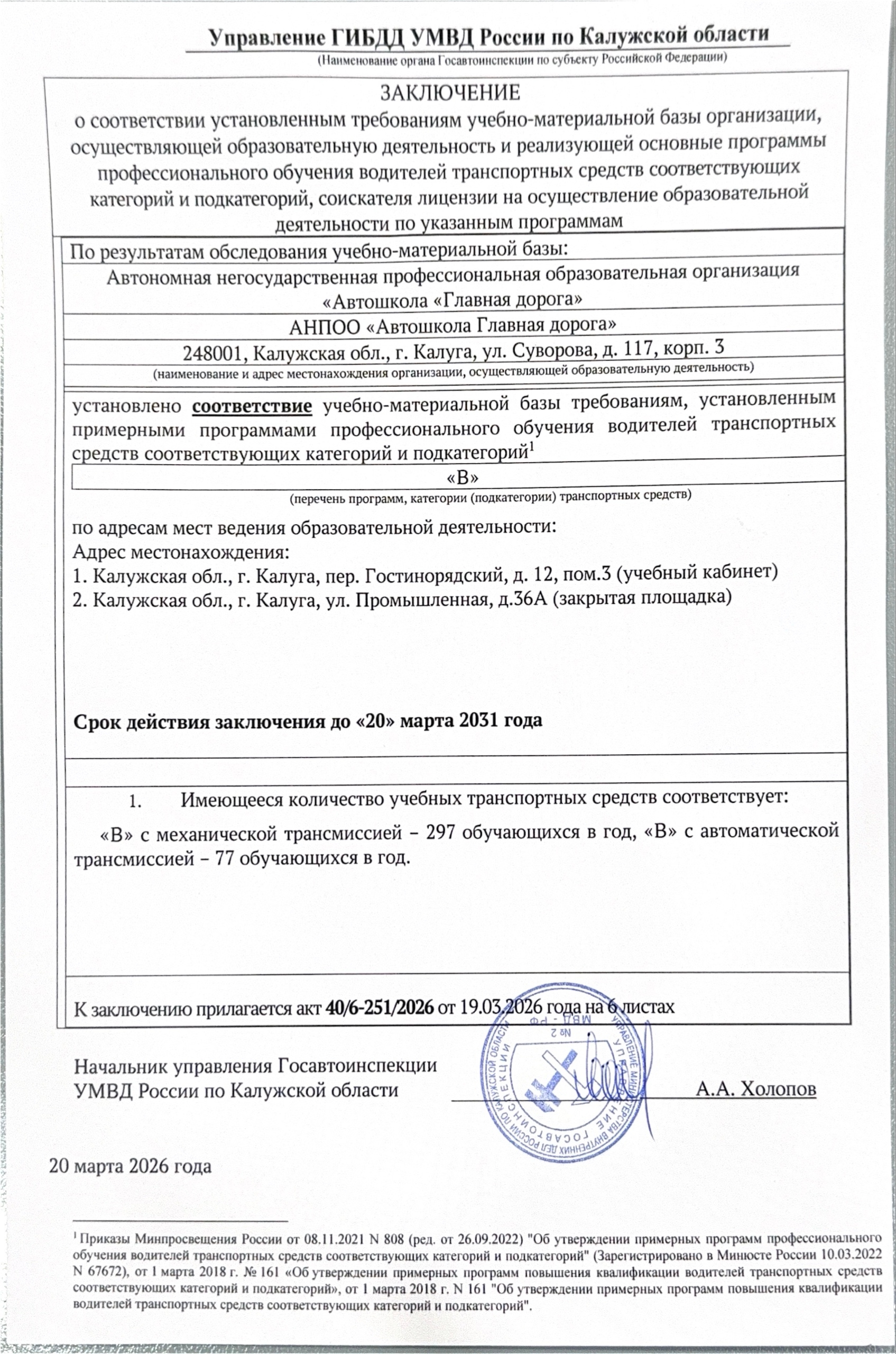 В связи со спецификой образовательных программ реализуемых АНПОО «Главная дорога» обучение инвалидов и лиц с ограниченными возможностями здоровья не прошедшие медицинскую комиссию не осуществляется